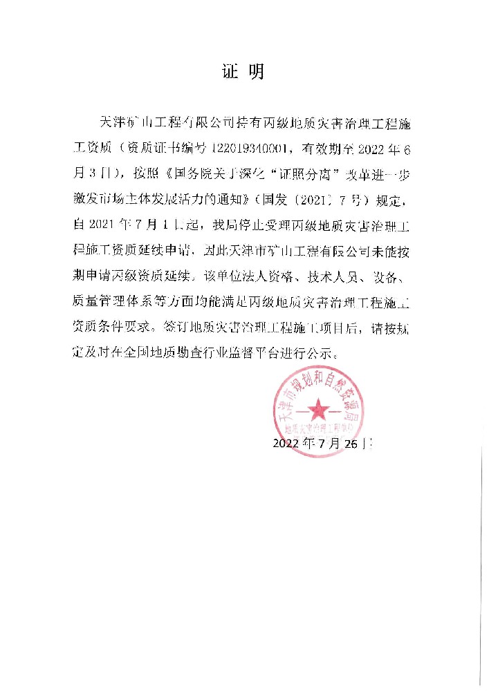 地質(zhì)災害治理工程施工資質(zhì)證書